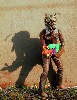 "Alien Costume" | Alien Head, old motorcycle leathers, welding gloves, water blaster. 1981 |