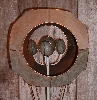 Leather, wood, hot melt glue on motorcycle helmet. |