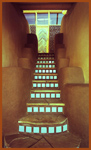 Adobe-like structure. Treads of flagstone. Tile facing. Not code legal (no handrail). Non-code legal stairs are the stock-in-trade of many architecture magazines. |