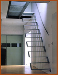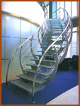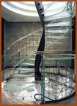 This sculptor/designer has produced numerous tour-de -force staircases. Central post is steel tube cut-away to create a small diameter helix with a long pitch. |