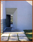 Asymmetrical entry design. Architectural texture created by steps around door. Monochromatic exterior. |