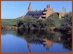 A refreshing departure from Platonic solids. Glazing in lantern towers is shingle like. Main sanctuary roof uses parabolic forms. |