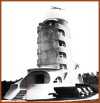 Geometry in action. Note the cluster of three towers; a medium diameter flat topped cylinder, a thin cylinder with a conical roof and broad cylinder with a hemispherical (dome) top. |