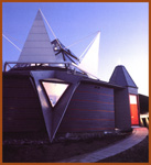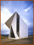 This starkly modern building looks like concrete origami (Japanese folded paper craft). Use of triangular and trapezoidal forms. |