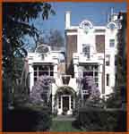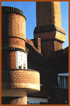 Notice the "face" in the projecting bay with modeled supports and the fanciful chimneys with more organic forms. |