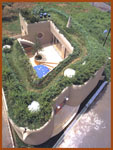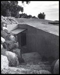 A naturalistic entry into an earth-sheltered house (the opposite wall would be open to the view). Note lightwell piercing sod roof. |