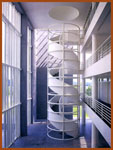 A crisp helical stair in a cage. Typical Meier "any color you want as long as it's white" design. |