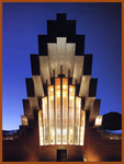 Another interpretation of entrance as lantern (see Makvocz's church above). Compare to Casa Vista entry portico at night. |