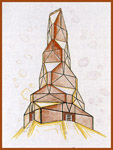 This 1920 drawing illustrates a form that is almost geodesic, presaging Buckminister Fuller. |